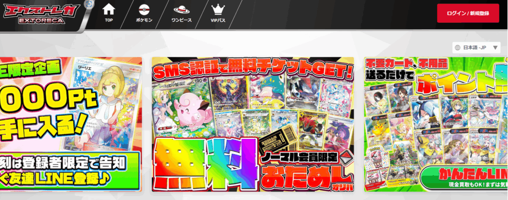 無料でオリパを引く事ができ、ハズレでもエクストレカ内で利用可能なPtを獲得できます。